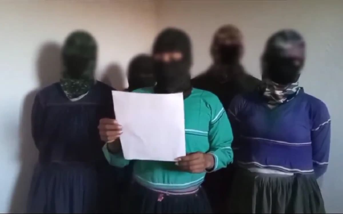 Cinco mujeres con pasamontañas acusaron a alguien conocido como “El Rojo” por cobro de piso, extorsión, asesinatos injustificados y desaparecidos.