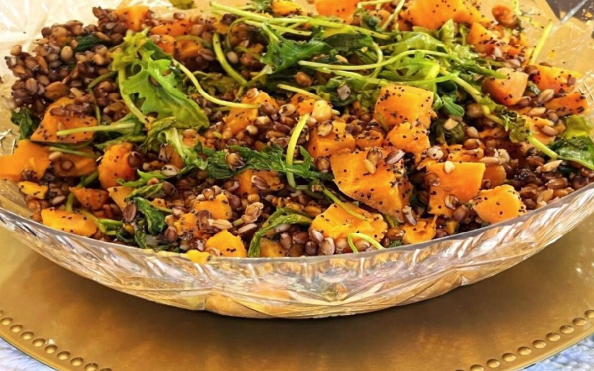 Es vegetariana y está hecha con soja, semillas de amapola, cebada, col rizada, maní, batata y/o semillas de girasol.