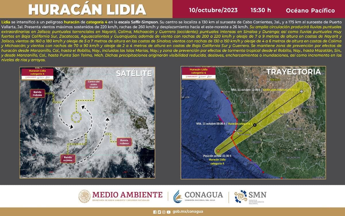 En 8 horas el huracán Lidia pasó de categoría 1 a 4 en el Pacífico mexicano y se espera que impacte en la zona de Bahía de Banderas, Nayarit y Puerto Vallarta, Jalisco.