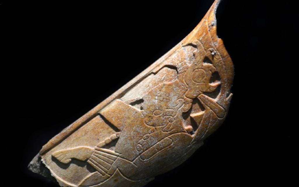 Se elaboró con parte de una tibia distal humana y tiene grabada una escena que expresa la comunicación con los dioses y antepasados.